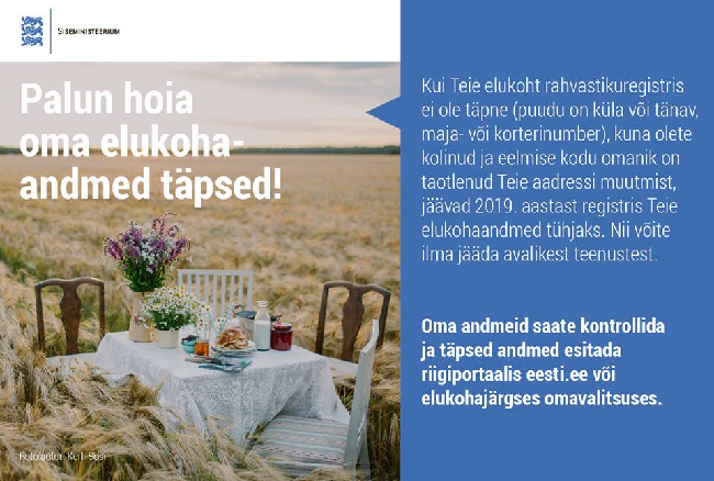 Andmete muutmist ei tasu jätta viimasele hetkele, sest muidu võib jaanuaris tabada halb üllatus, kus inimene jääb ilma elukohaga seotud avalikest teenustest nagu lasteaiakoht, juhiloa pikendamine vms. Siseministeerium saatis aprillis kõikidele neile, kes sihtgruppi kuuluvad ja kelle meiliaadress on rahvastikuregistris olemas, ka kirjaliku teavituse e-kirja näol. Kordusteavitus on plaanis sügisel.